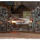 Im Gegensatz zum Stahlwerk, wurden wir hier mit neuen und völlig anderen Problemen konfrontiert. Die riesigen und leistungsstarken Brückenkrane, mit denen nahezu sämtliche Transporte innerhalb der riesigen Hallen bewältigt werden, versetzen die massiv anmutenden Hallenkonstruktionen allerorts in spürbar kräftige Schwingungen. Diese permanent auftretenden Erschütterungen lassen keine Langzeitbelichtungen zu. Wir konnten allerdings die wenigen Transportpausen dazu nutzen, um doch einige wenige brauchbare Fotos machen zu können.